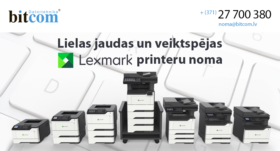 Mums piedāvājumā ir pieejama plaša daudzfunkcionālo iekārtu, printeru, projektoru, kopējamo iekārtu un citas biroja tehnikas izvēle. Tas ir ērti un ekonomiski izdevīgi – ļoti ātri birojs tiek nodrošināts ar nepieciešamo tehniku, bez nepieciešamības izņemt no apgrozījuma līdzekļus tās iegādei. Turklāt Bitcom piedāvā kvalitatīvas iekārtas LEXMARK, kuru darba rezultāts – vairākkārtējs drukāšanas pašizmaksas samazinājums.